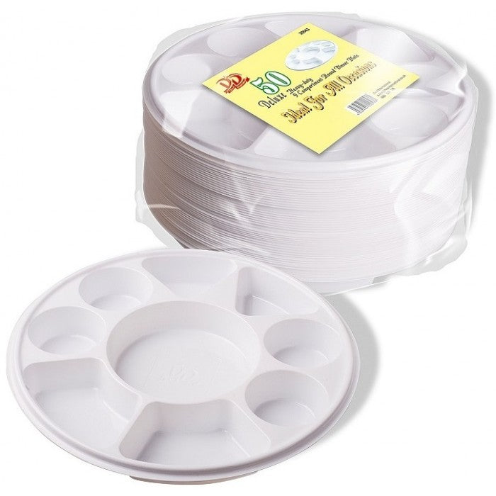 Dina Deluxe Round Plastic Dinner Plate 9 Compartment (50 Pcs)