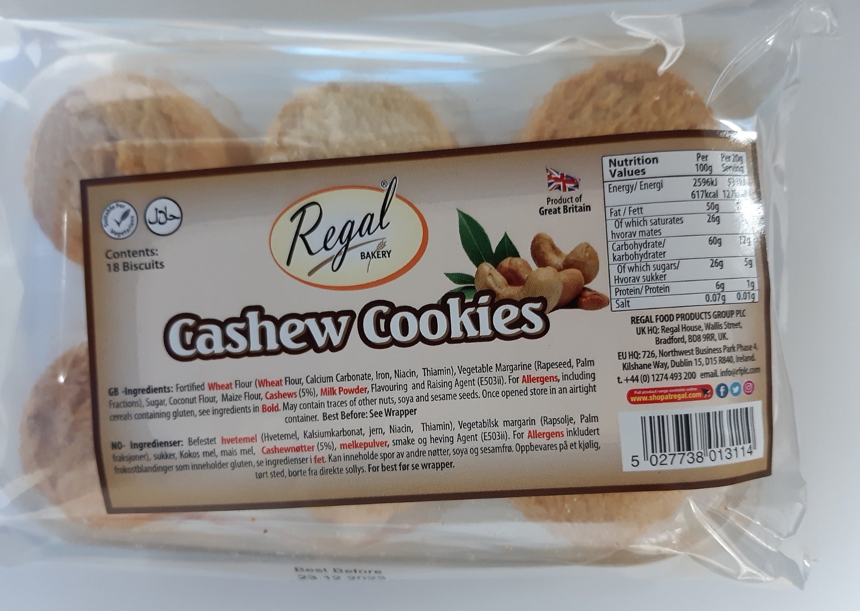 Regal Egg Free Cashew Cookies 18PC